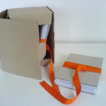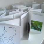 Dans une boite bibliothèque en carton recyclé, 6 carnets leporello font référence au carnet de pèlerinage. Photographies et textes poétiques mixant l’art du haïku, du pantoum malais… se répondent.