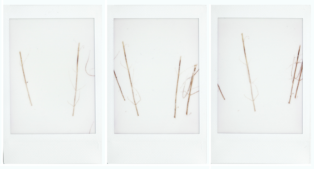 L’utilisation du Polaroid accentue l’impermanence du sujet en conférant aux images une existence et une présence évanescentes. Tout en interrogeant la dialectique apparition/disparition de l’image, les imperfections du procédé renforcent cette idée et révèle une oeuvre graphique.