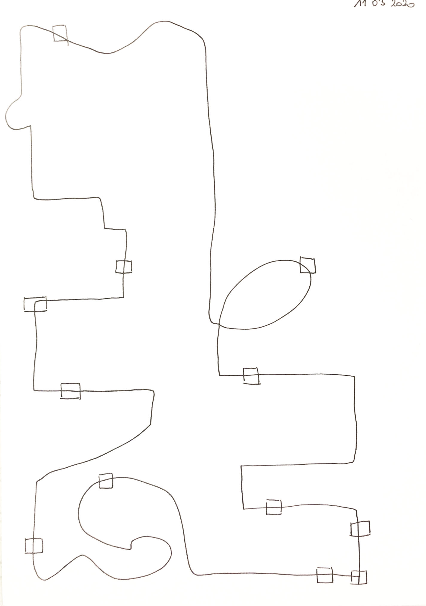 Le son du jardin comme de la ville ont changé… je commence à faire mes 1km autour de la maison : je trace des lignes de mes déambulations et filme le son de mes pas : écoute. ( les vidéos sont à écouter sur simple demande à kalucine@gmail.com)