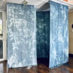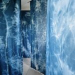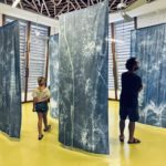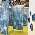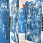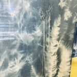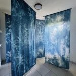 En m’appropriant les formes et motifs des forêts sombres tropicales, je décline sous la forme de photogrammes troncs fins, branches, feuilles, réalisés au cyanotype sur des tissus grand format.