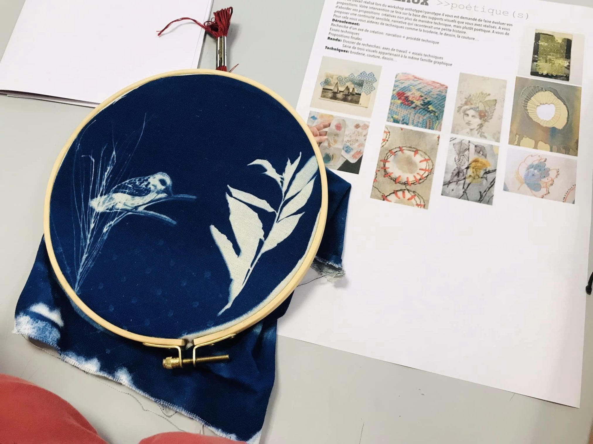 Par une approche sensible de la photographie ce workshop a permis la découverte d’un procédé ancien le cyanotype et de l’anthotypie, «tirages par contact»: méthode de tirage qui permet d’obtenir, sur papier ou tissu, la version positive d’un négatif.