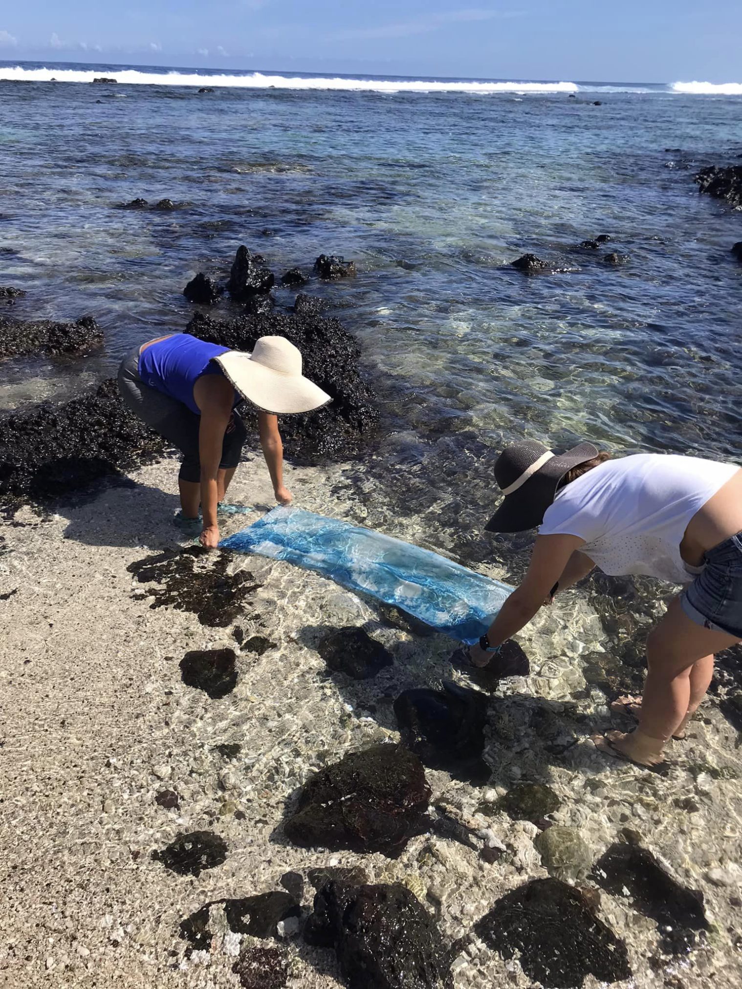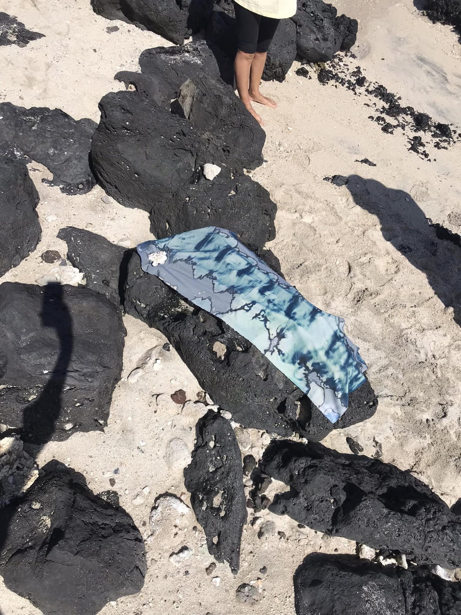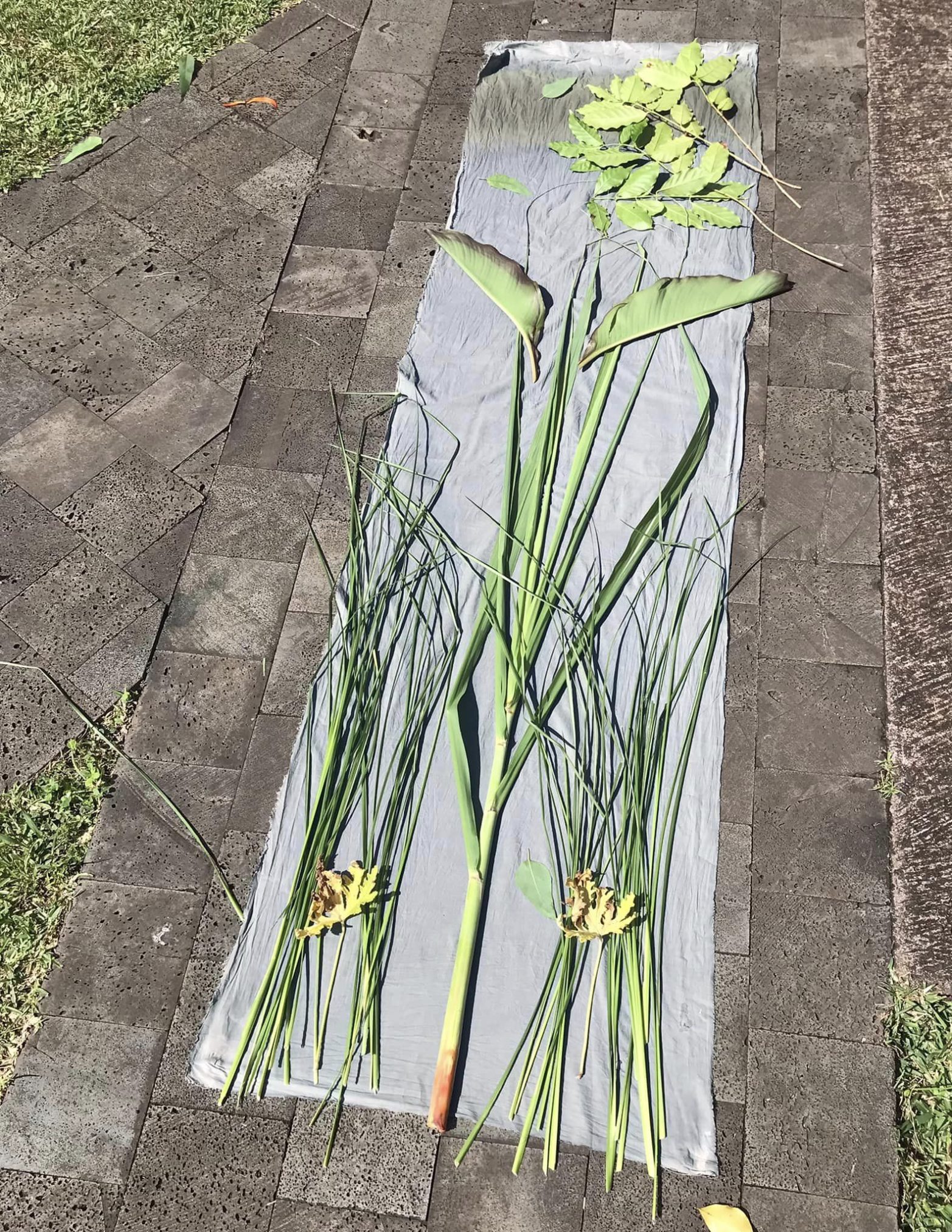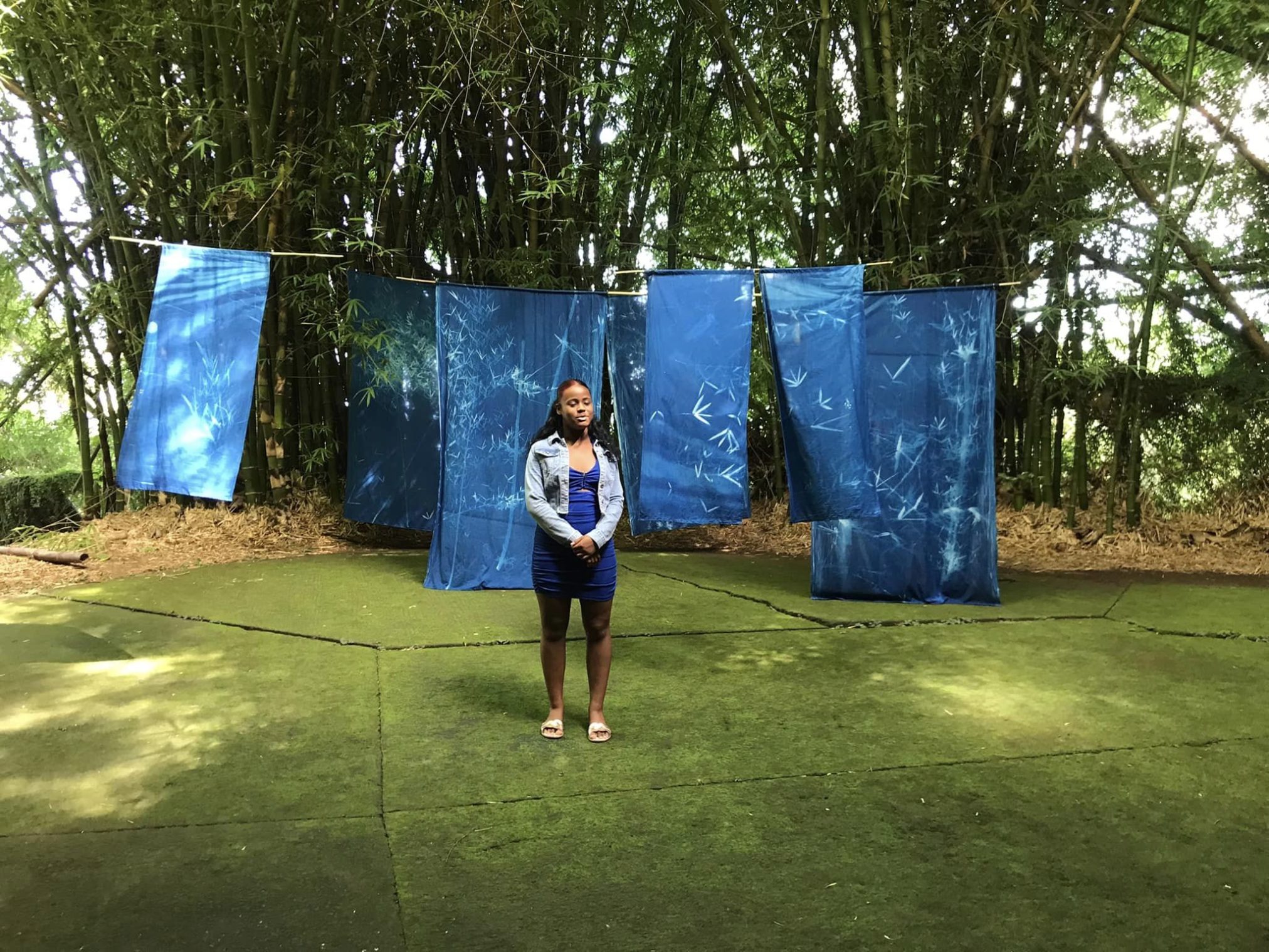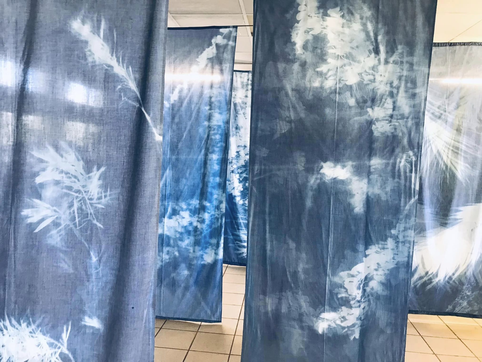 Il est la réalisation de cyanotypes sur tissu grand format : photogrammes de plantes et captures d’ombres.