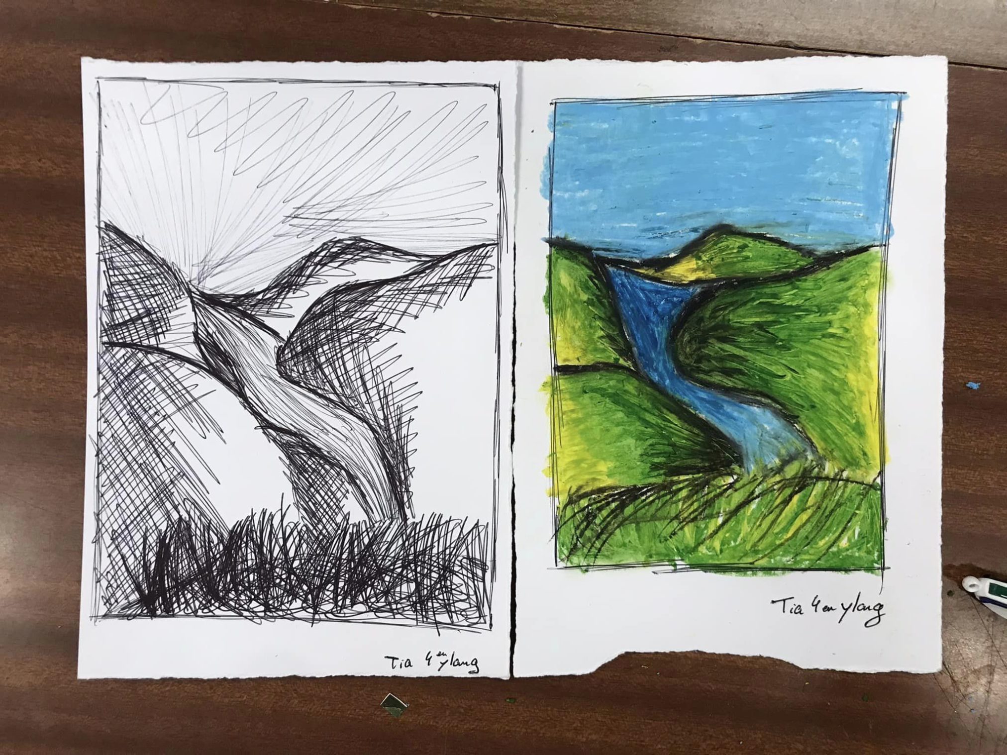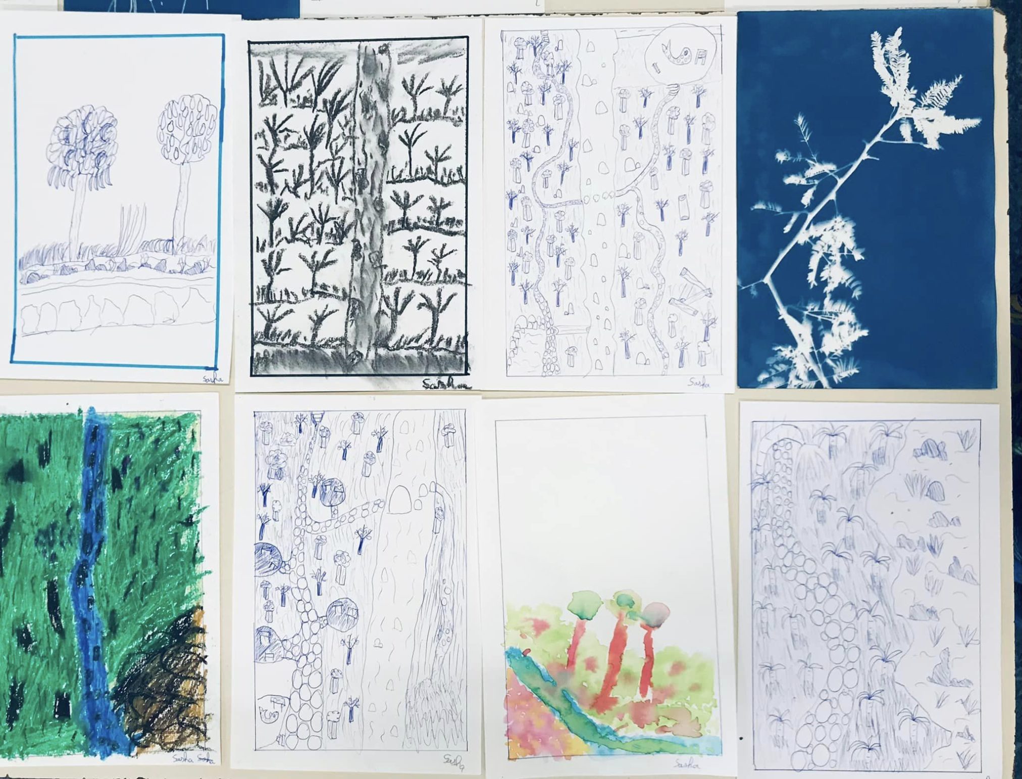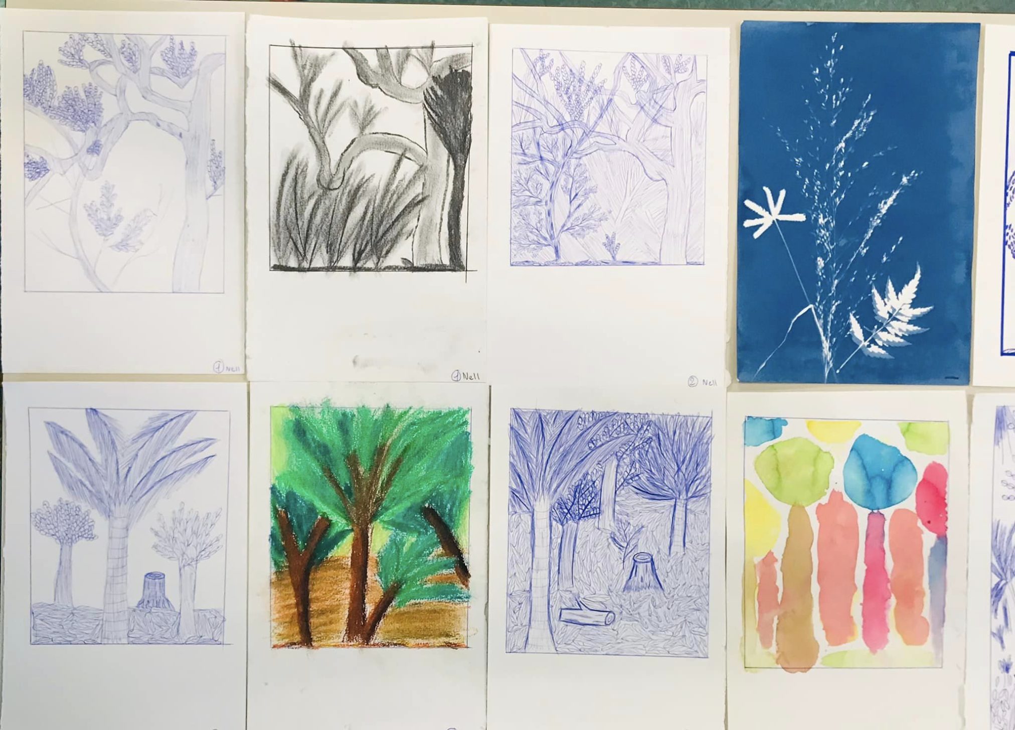 Dessins en classe, et de mémoire, au bic, pastels, fusain, à l’encre…
