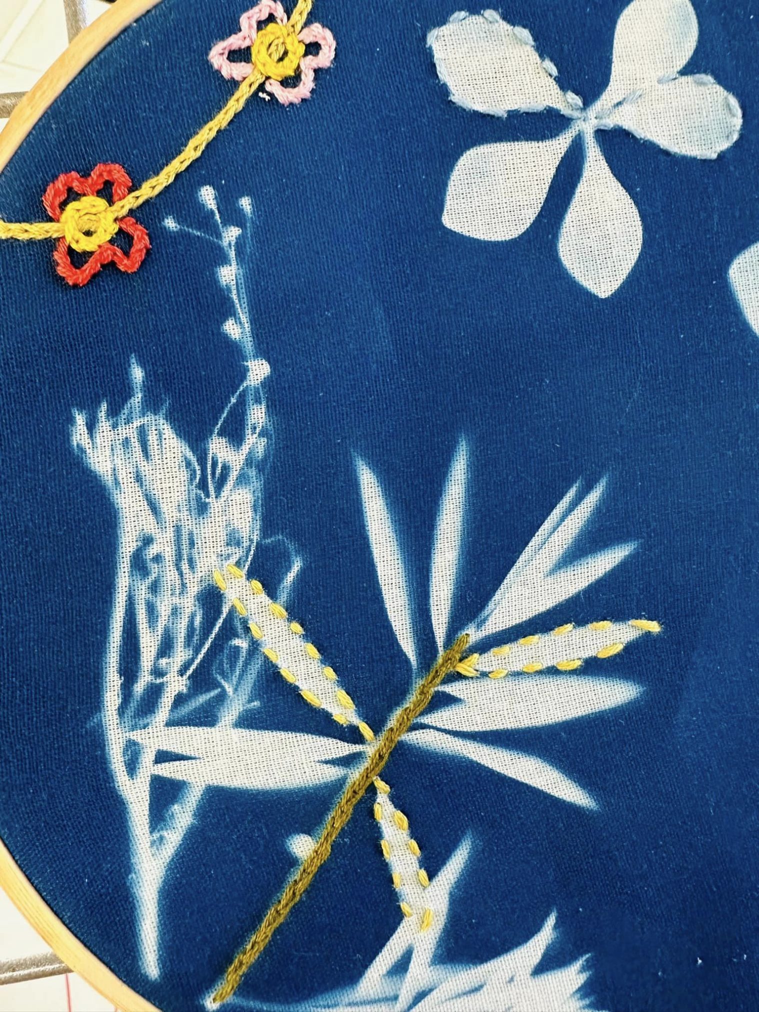 Découverte d’un procédé ancien le cyanotype (arts visuels) + broderie (arts appliqués) – Nature et biodiversité – Art et environnement