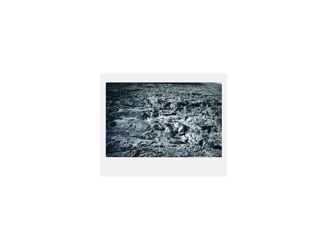 Le travail de terrain se prolonge ici sous nos yeux. L’artiste interroge la photographie qui l’interroge en retour : comment une image, née de lumière, peut-elle devenir tangible, presque sculpturale ? Que se passe-t-il au-delà du réel ? Si elle tend à saisir l’instant, les images se meuvent comme ces géographies, géologies concentriques où les volcans recomposent, remodèlent ce que nous croyons comme acquis. L’œil, est invité à reconstituer un nouveau paysage. Créer alors son propre voyage est à portée de main; comme s’approcher progressivement de ses lointains. Un dialogue s’insinue dans un tempo personnel et approprié. Ici l’humain comme le paysage est en transition. Nous en humons le soufre des scories.