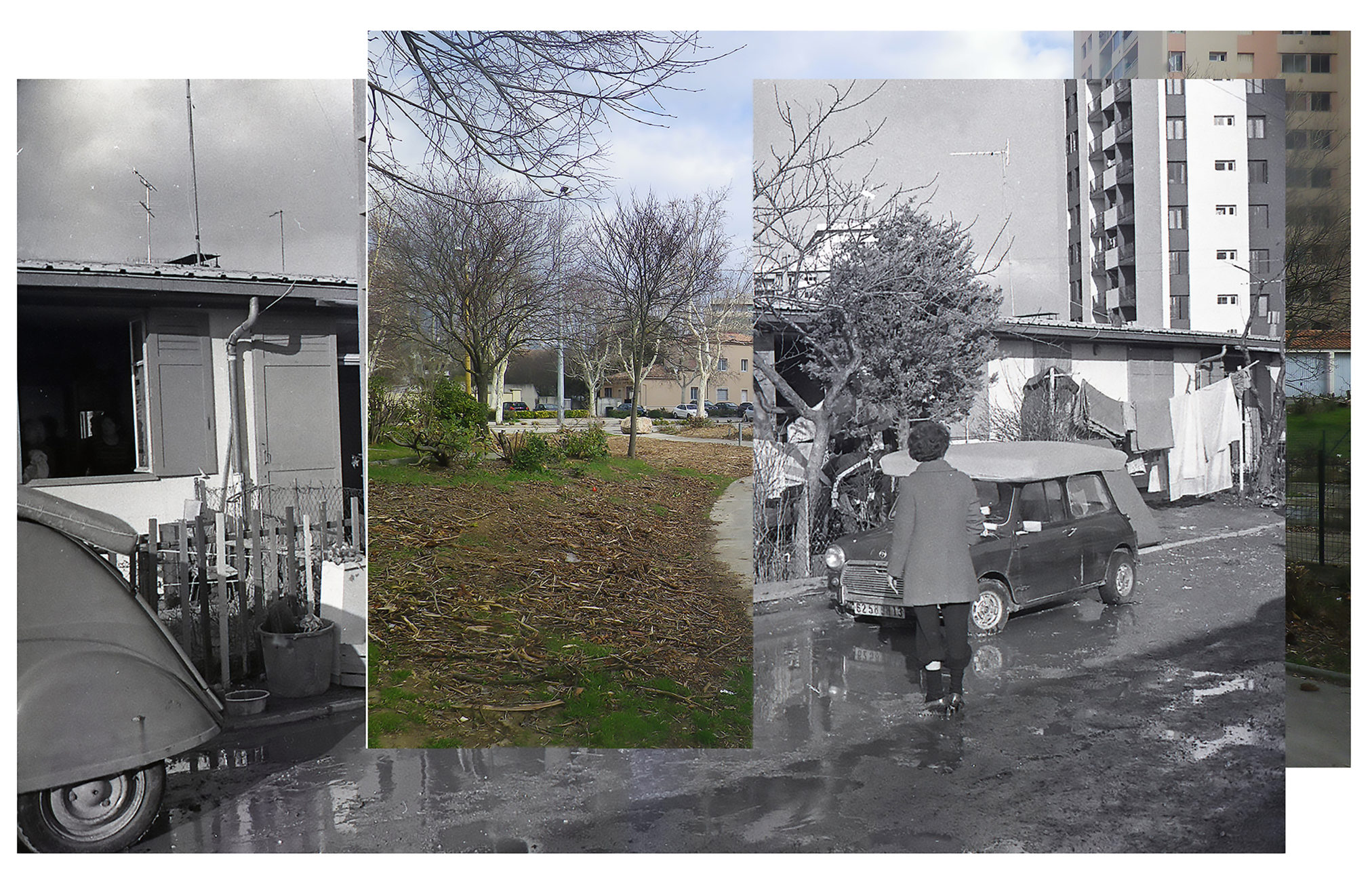 Sur les pas des «photographes» du siècle dernier, nous allons remonter le temps jusqu’à la construction des Arpèges et bien au delà: jusqu’aux baraques, terrains de jeux, abattoir, usine, moulin… à la recherche des lieux, des points de vue prècis, rephotographier ces paysages, ces coins de ville. L’idée : les mettre en écho aux images d’hier, les faire correspondre, juxtaposer les perspectives et inventer d’autres images. La photographie révèlera l’écart dans le temps et dans l’espace, le décalage entre deux images.